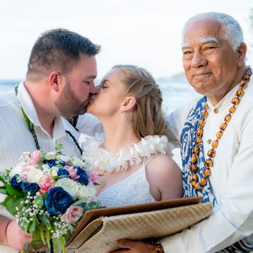 A Hawaiian wedding often begins as it does today with the exchange of leis and a kiss. We do this for several reasons.